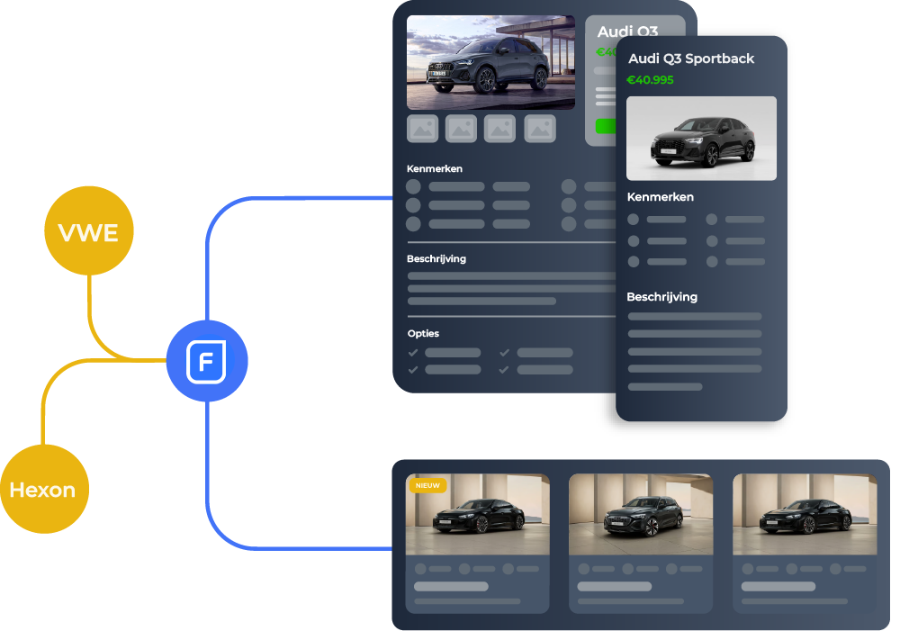 Je kent het wel: je hebt een prachtige nieuwe occasion binnengekregen. Je meldt hem aan bij VWE, uploadt de foto's, en dan begint het proces opnieuw voor je eigen website. Zonde van de tijd. Met Fleetbase van Webguyz hoef je een auto nog maar op één plek in te voeren. Wij koppelen de data van Hexon en VWE direct aan jouw website. Real-time, foutloos en volledig in jouw eigen huisstijl.