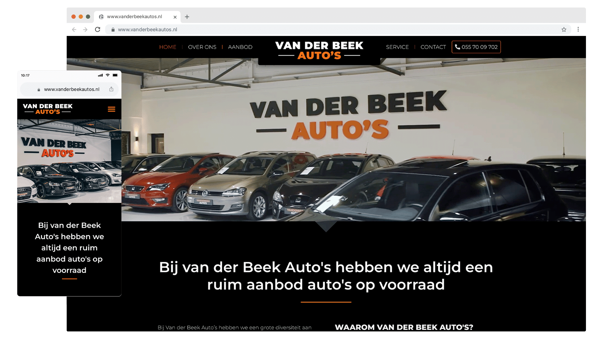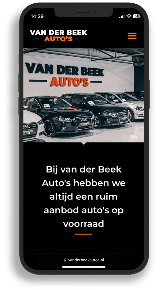 Voor de automotive onderneming hebben we een moderne one-page website ontwikkeld gevuld met strak beeldmateriaal. We hebben de website voorzien van een RDW feed in de huisstijl van Van der Beek auto’s. Beschikbare occasions uit de showroom worden automatisch toegevoegd. Zo dient de website altijd als een up-to-date catalogus voor de onderneming.