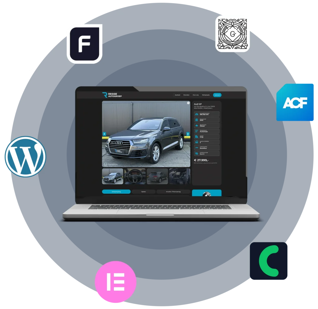 Onze FLEETBASE-plugin integreert naadloos met elke WordPress-website en biedt volledige ondersteuning voor alle populaire pagebuilders. Wij halen het maximale uit het WordPress-ecosysteem door volledige compatibiliteit te bieden met tools zoals Crocoblock (JetEngine), Advanced Custom Fields (ACF), Gutenberg en Elementor. Of je nu werkt met dynamische content of complexe database-koppelingen, onze plugin sluit perfect aan op jouw workflow. Hierdoor behoud je de volledige vrijheid om je online showroom precies zo beheren als jij dat wilt, zonder technische beperkingen.
