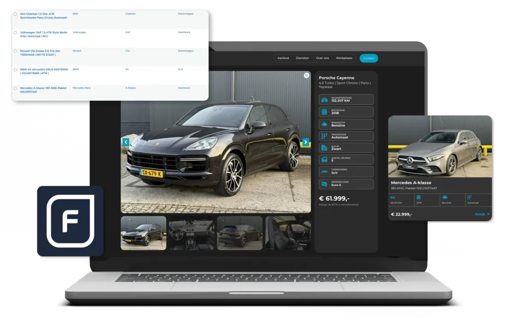 FLEETBASE vormt de cruciale schakel tussen jouw huidige voorraadbeheer en een professionele online presentatie. In plaats van handmatige invoer of trage systemen, zorgt onze plugin voor een naadloze verbinding die jouw voertuigen direct in de spotlight zet. Of je nu werkt met Hexon, Mobilox, Gaspedaal.nl of VWE, FLEETBASE communiceert moeiteloos met alle grote platformen. Hierdoor transformeer je ruwe data uit je beheersysteem tot een visueel aantrekkelijke en technisch geoptimaliseerde showroom op je eigen WordPress-website.